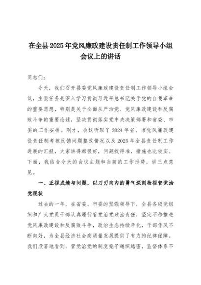 【七哥公文】2025年:在全县2025年党风廉政建设责任制工作领导小组会议上的讲话+更多免费公文+VX:QiGeGongWen2024