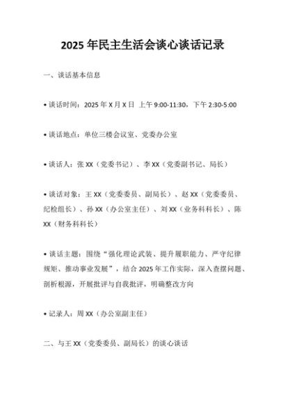 / 【七哥公文】2025年:2025年民主生活会谈心谈话记录+更多免费公文+VX:QiGeGongWen2024