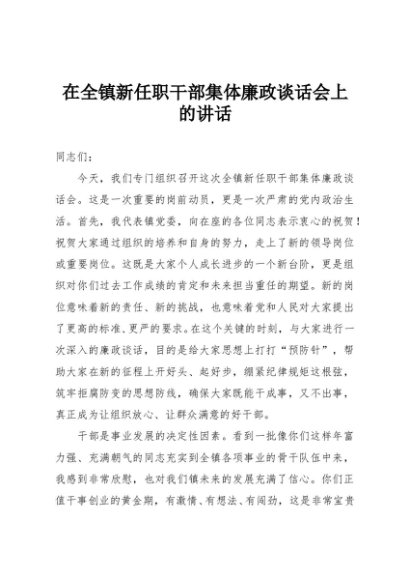 / 【七哥公文】2025年:在全镇新任职干部集体廉政谈话会上的讲话+更多免费公文+VX:QiGeGongWen2024