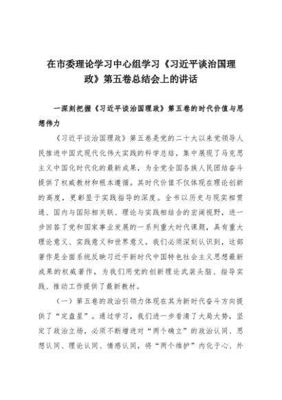 【七哥公文】2025年:在市委理论学习中心组学习《习近平谈治国理政》第五卷总结会上的讲话+更多免费公文+VX:QiGeGongWen2024