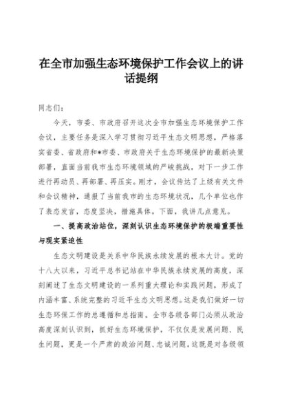 / 【七哥公文】2025年:在全市加强生态环境保护工作会议上的讲话提纲+更多免费公文+VX:QiGeGongWen2024