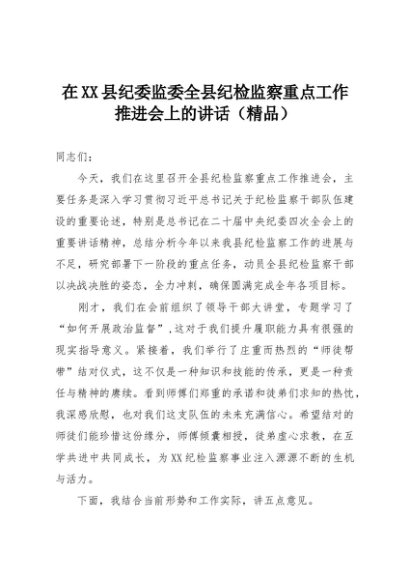 【七哥公文】2025年:在XX县纪委监委全县纪检监察重点工作推进会上的讲话(精品)+更多免费公文+VX:QiGeGongWen2024