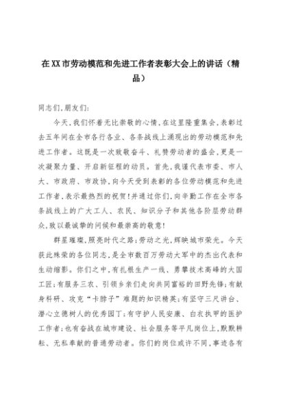 【七哥公文】2025年:在XX市劳动模范和先进工作者表彰大会上的讲话(精品)+更多免费公文+VX:QiGeGongWen2024