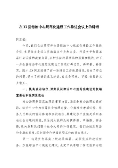 / 【七哥公文】2025年:在XX县综治中心规范化建设工作推进会议上的讲话+更多免费公文+VX:QiGeGongWen2024