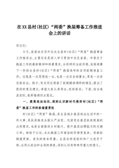 【七哥公文】2025年:在XX县村(社区)“两委”换届筹备工作推进会上的讲话+更多免费公文+VX:QiGeGongWen2024