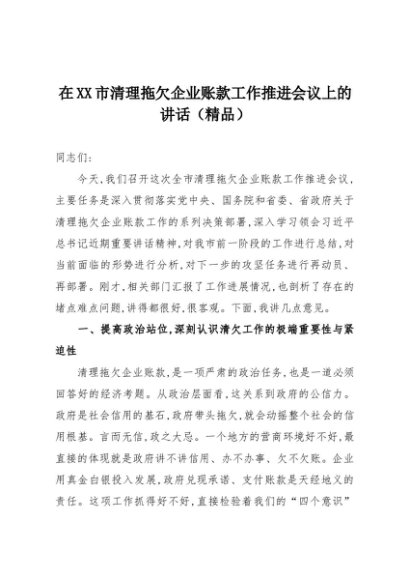 【七哥公文】2025年:在XX市清理拖欠企业账款工作推进会议上的讲话(精品)+更多免费公文+VX:QiGeGongWen2024