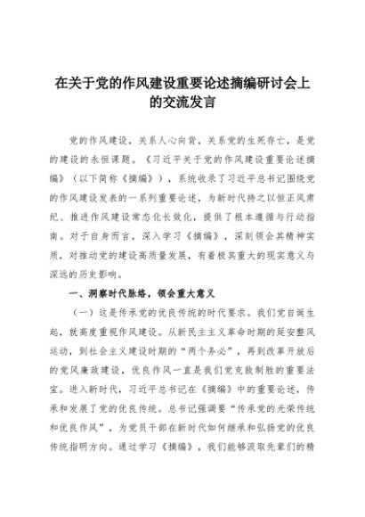 【七哥公文】2025年:在关于党的作风建设重要论述摘编研讨会上的交流发言+更多免费公文+VX:QiGeGongWen2024