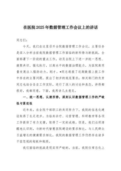 / 【七哥公文】2025年:在医院2025年数据管理工作会议上的讲话+更多免费公文+VX:QiGeGongWen2024
