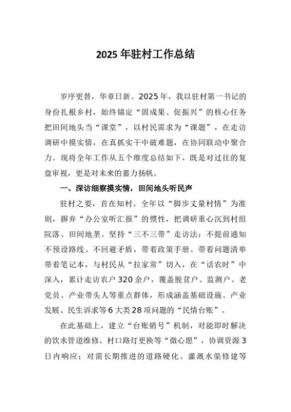 / 【七哥公文】2025年:2025年驻村工作总结+更多免费公文+VX:QiGeGongWen2024