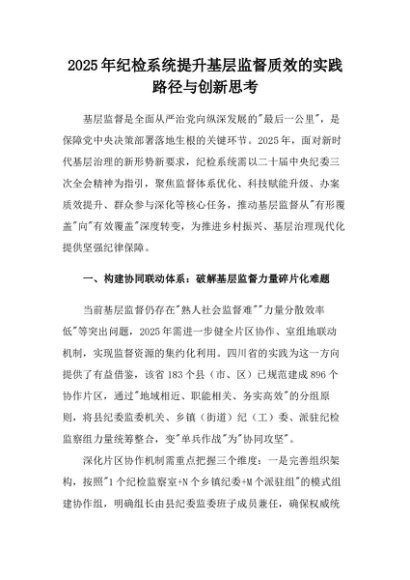 【七哥公文】2025年:2025年纪检系统提升基层监督质效的实践路径与创新思考+更多免费公文+VX:QiGeGongWen2024
