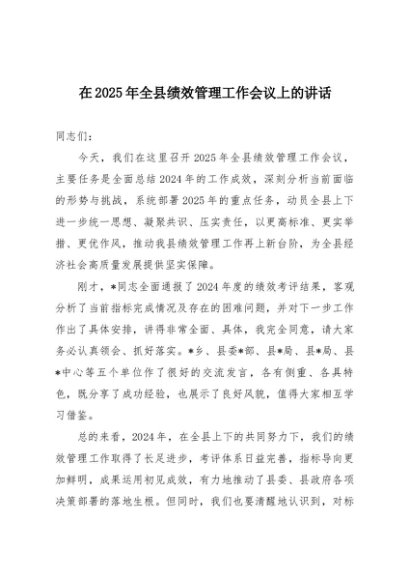 / 【七哥公文】2025年:在2025年全县绩效管理工作会议上的讲话+更多免费公文+VX:QiGeGongWen2024