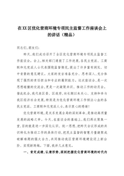【七哥公文】2025年:在XX区优化营商环境专项民主监督工作座谈会上的讲话(精品)+更多免费公文+VX:QiGeGongWen2024