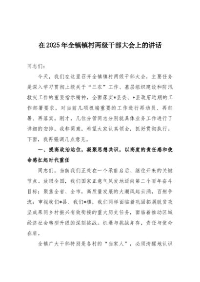 / 【七哥公文】2025年:在2025年全镇镇村两级干部大会上的讲话+更多免费公文+VX:QiGeGongWen2024
