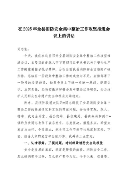 【七哥公文】2025年:在2025年全县消防安全集中整治工作攻坚推进会议上的讲话+更多免费公文+VX:QiGeGongWen2024