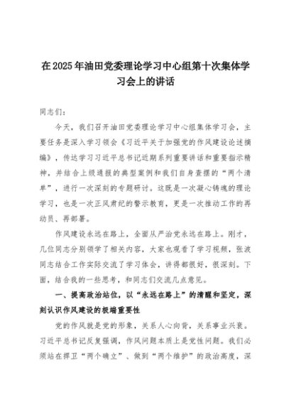 【七哥公文】2025年:在2025年油田党委理论学习中心组第十次集体学习会上的讲话+更多免费公文+VX:QiGeGongWen2024