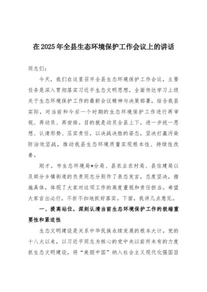 / 【七哥公文】2025年:在2025年全县生态环境保护工作会议上的讲话+更多免费公文+VX:QiGeGongWen2024