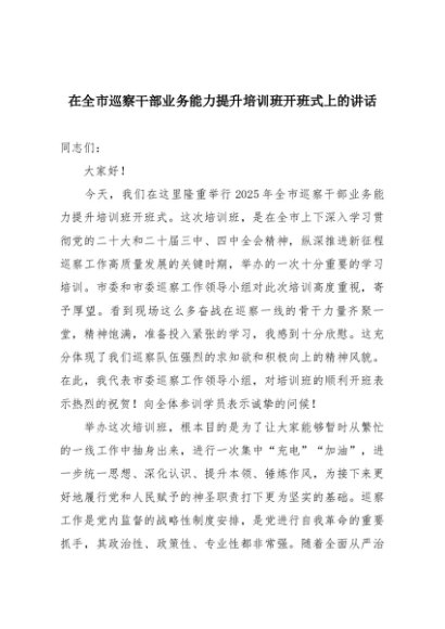 / 【七哥公文】2025年:在全市巡察干部业务能力提升培训班开班式上的讲话+更多免费公文+VX:QiGeGongWen2024