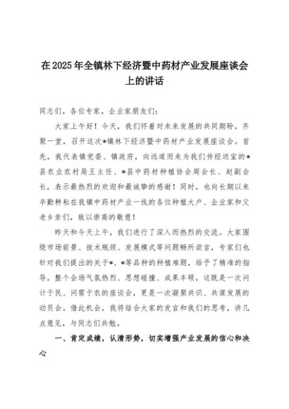 【七哥公文】2025年:在2025年全镇林下经济暨中药材产业发展座谈会上的讲话+更多免费公文+VX:QiGeGongWen2024