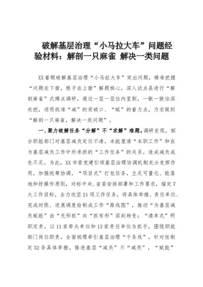 【七哥公文】2025年:破解基层治理“小马拉大车”问题经验材料:解剖一只麻雀 解决一类问题+更多免费公文+VX:QiGeGongWen2024