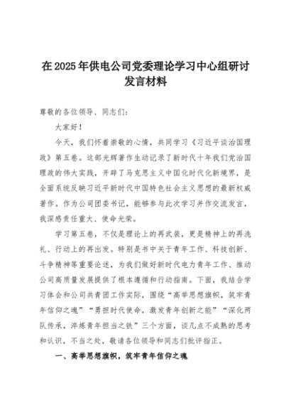 【七哥公文】2025年:在2025年供电公司党委理论学习中心组研讨发言材料+更多免费公文+VX:QiGeGongWen2024