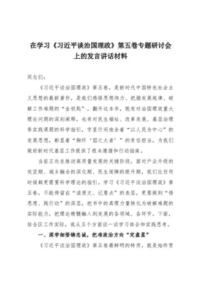 【七哥公文】2025年:在学习《习近平谈治国理政》第五卷专题研讨会上的发言讲话材料+更多免费公文+VX:QiGeGongWen2024