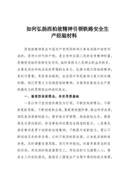 【七哥公文】2025年:如何弘扬西柏坡精神引领铁路安全生产经验材料+更多免费公文+VX:QiGeGongWen2024