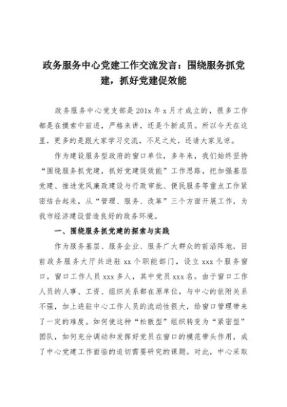 【七哥公文】2025年:政务服务中心党建工作交流发言:围绕服务抓党建,抓好党建促效能+更多免费公文+VX:QiGeGongWen2024