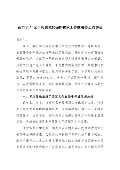 【七哥公文】2025年:在2025年全市历史文化保护传承工作推进会上的讲话+更多免费公文+VX:QiGeGongWen2024