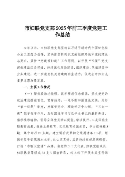 / 【七哥公文】2025年:市妇联党支部2025年前三季度党建工作总结+更多免费公文+VX:QiGeGongWen2024