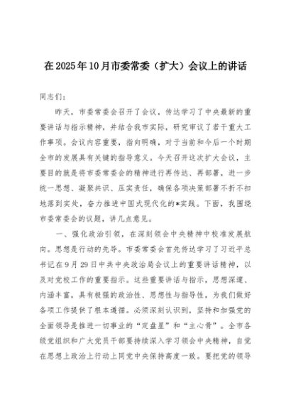 / 【七哥公文】2025年:在2025年10月市委常委(扩大)会议上的讲话+更多免费公文+VX:QiGeGongWen2024