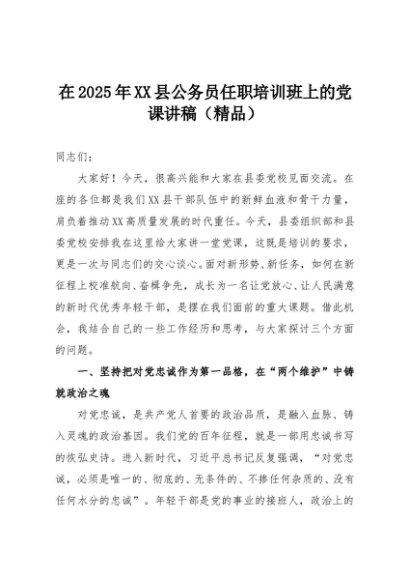【七哥公文】2025年:在2025年XX县公务员任职培训班上的党课讲稿(精品)+更多免费公文+VX:QiGeGongWen2024