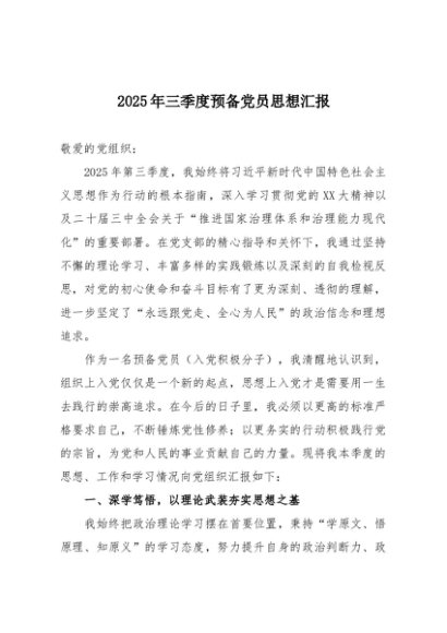 / 【七哥公文】2025年:2025年三季度预备党员思想汇报+更多免费公文+VX:QiGeGongWen2024