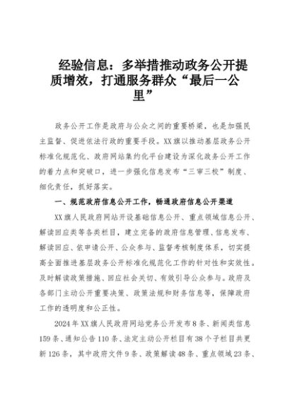 【七哥公文】2025年:经验信息:多举措推动政务公开提质增效,打通服务群众“最后一公里”+更多免费公文+VX:QiGeGongWen2024