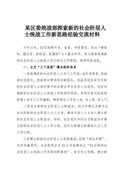 【七哥公文】2025年:某区委统战部探索新的社会阶层人士统战工作新思路经验交流材料+更多免费公文+VX:QiGeGongWen2024