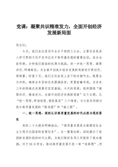 / 【七哥公文】2025年:党课:凝聚共识精准发力,全面开创经济发展新局面+更多免费公文+VX:QiGeGongWen2024