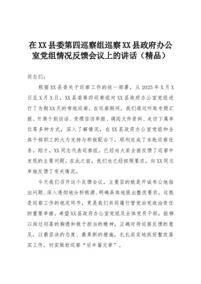 【七哥公文】2025年:在XX县委第四巡察组巡察XX县政府办公室党组情况反馈会议上的讲话(精品)+更多免费公文+VX:QiGeGongWen2024