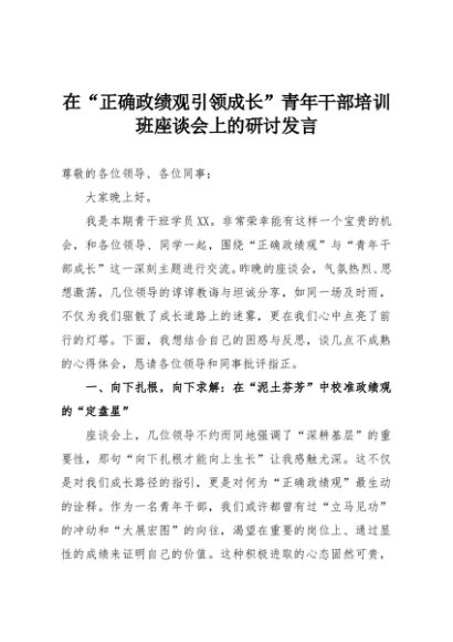 【七哥公文】2025年:在“正确政绩观引领成长”青年干部培训班座谈会上的研讨发言+更多免费公文+VX:QiGeGongWen2024