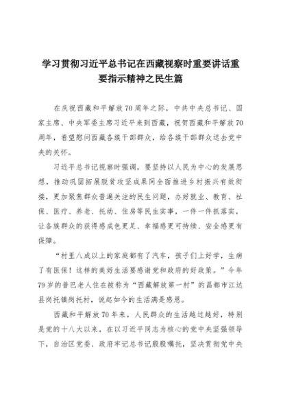 【七哥公文】2025年:学习贯彻习近平总书记在西藏视察时重要讲话重要指示精神之民生篇+更多免费公文+VX:QiGeGongWen2024