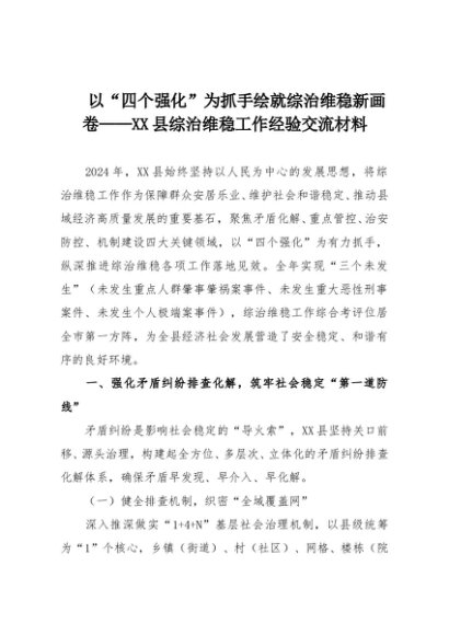 【七哥公文】2025年:以“四个强化”为抓手绘就综治维稳新画卷——XX县综治维稳工作经验交流材料+更多免费公文+VX:QiGeGongWen2024