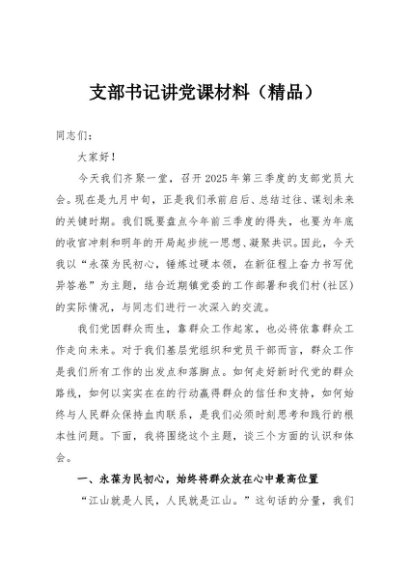 【七哥公文】2025年:支部书记讲党课材料(精品)+更多免费公文+VX:QiGeGongWen2024