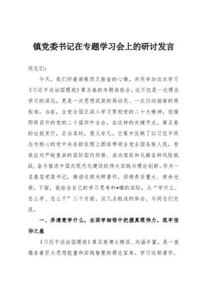 / 【七哥公文】2025年:镇党委书记在专题学习会上的研讨发言+更多免费公文+VX:QiGeGongWen2024