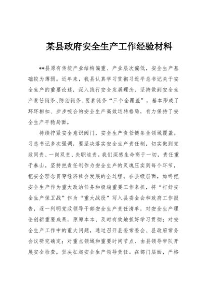 / 【七哥公文】2025年:某县政府安全生产工作经验材料+更多免费公文+VX:QiGeGongWen2024