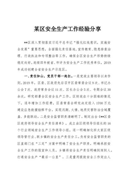 / 【七哥公文】2025年:某区安全生产工作经验分享+更多免费公文+VX:QiGeGongWen2024