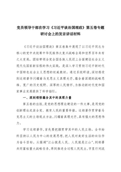 【七哥公文】2025年:党员领导干部在学习《习近平谈治国理政》第五卷专题研讨会上的发言讲话材料+更多免费公文+VX:QiGeGongWen2024