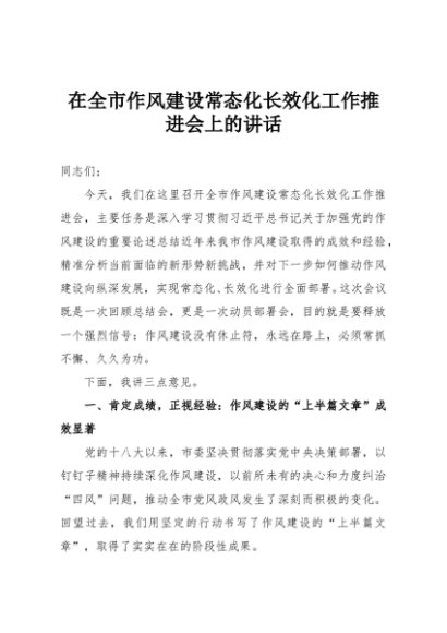 / 【七哥公文】2025年:在全市作风建设常态化长效化工作推进会上的讲话+更多免费公文+VX:QiGeGongWen2024