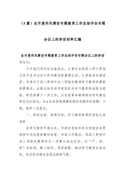 【七哥公文】2025年:(7篇)在开展作风建设专题教育工作总结评估专题会议上的讲话材料汇编+更多免费公文+VX:QiGeGongWen2024