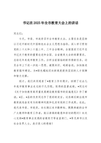 / 【七哥公文】2025年:书记在2025年全市教育大会上的讲话+更多免费公文+VX:QiGeGongWen2024