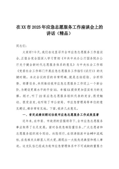 【七哥公文】2025年:在XX市2025年应急志愿服务工作座谈会上的讲话(精品)+更多免费公文+VX:QiGeGongWen2024