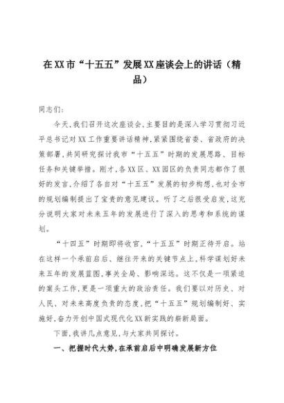 【七哥公文】2025年:在XX市“十五五”发展XX座谈会上的讲话(精品)+更多免费公文+VX:QiGeGongWen2024