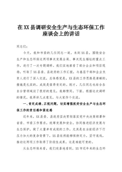【七哥公文】2025年:在XX县调研安全生产与生态环保工作座谈会上的讲话+更多免费公文+VX:QiGeGongWen2024